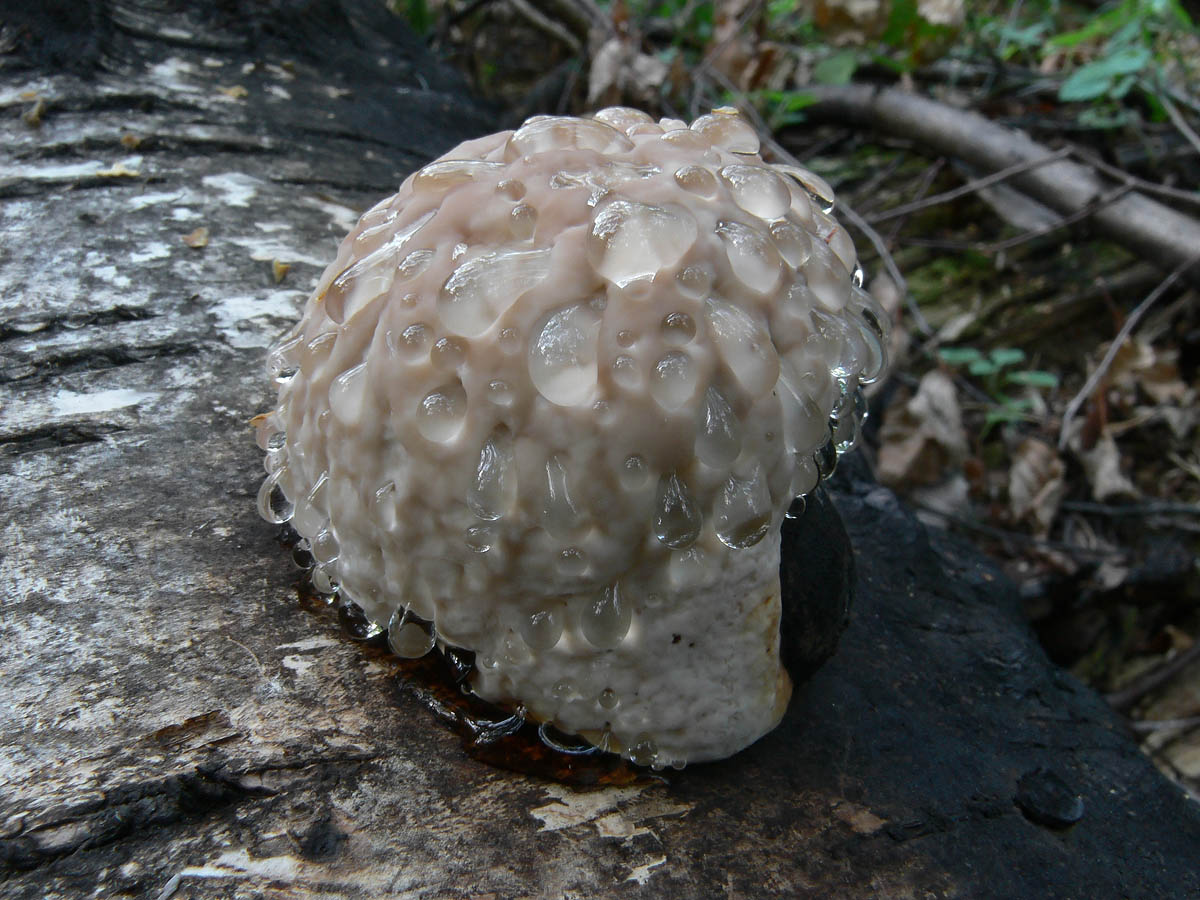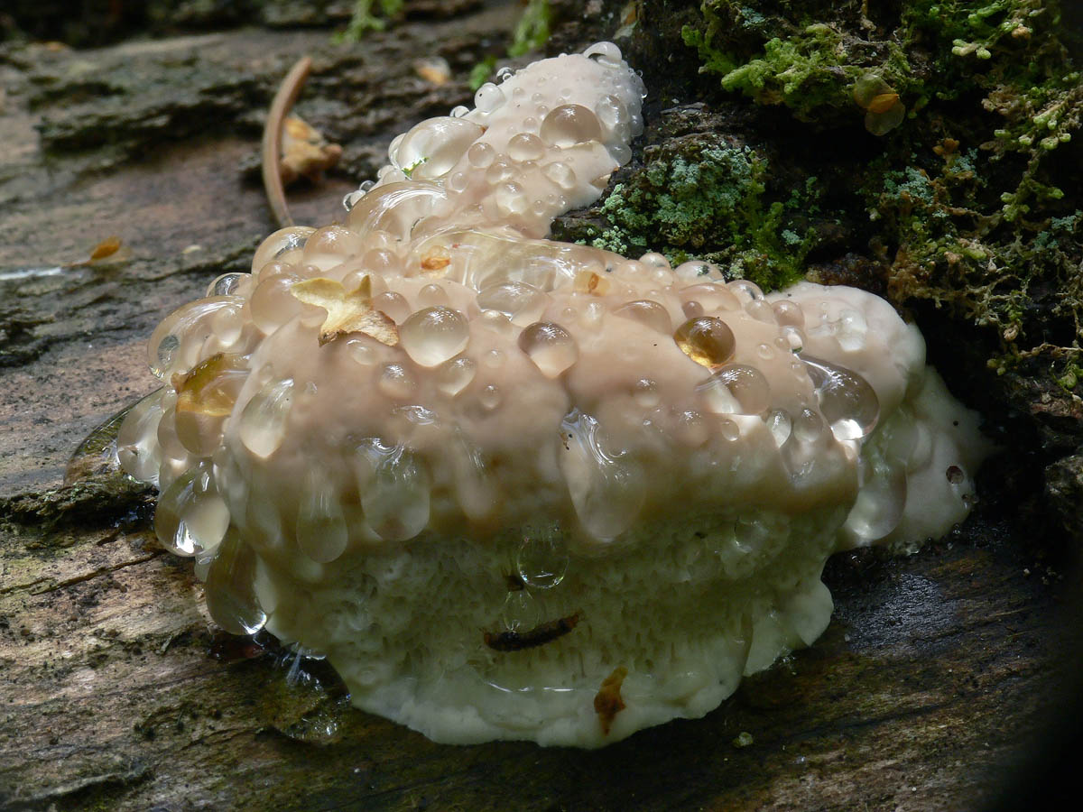 Наблюдение за гуттирующим Трутовиком окаймлённым (Fomitopsis pinicola) подсказало ещё один источник влаги для грибов, кроме редких пока дождей и росы, выпадающей холодными ночами.